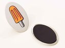 Der Flächenmagnet ist der wohlbekannte Kühlschrankmagnet und hält mit seiner magnetischen Rückseite jeden Erinnerungszettel am Kühlschrank. Der Magnet füllt die komplette Rückseite des Buttons aus.